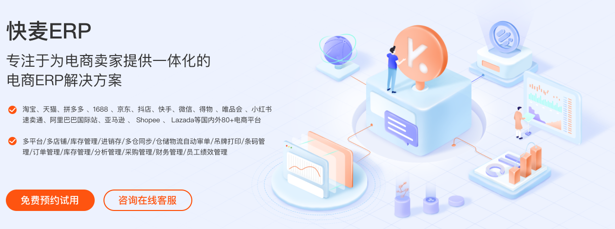 可以了解快麥ERP系統哦,價格經濟實惠,而且功能齊全,服務周到,是一個既支持多平臺多賬號管控,又支持倉庫規劃的系統管理軟件。購買軟件后,也會有專業的實施親臨現場,了解商家倉庫需求并做合理規劃。如果有任何使用問題和功能需求,也可以產品客服,客戶經理做詳細地交流。且即使日常產生了百萬訂單量,軟件也仍能保證配送采購、倉儲庫存、售后服務、數據報表、上架發貨等流程的良性發展!