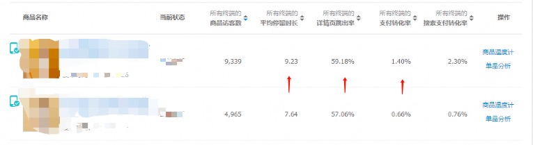 同款商品詳情頁修改后,頁面停留時長和轉(zhuǎn)化率呈上升趨勢。流量倍增的情況下,跳失率增長2個點,屬正常范圍內(nèi)。